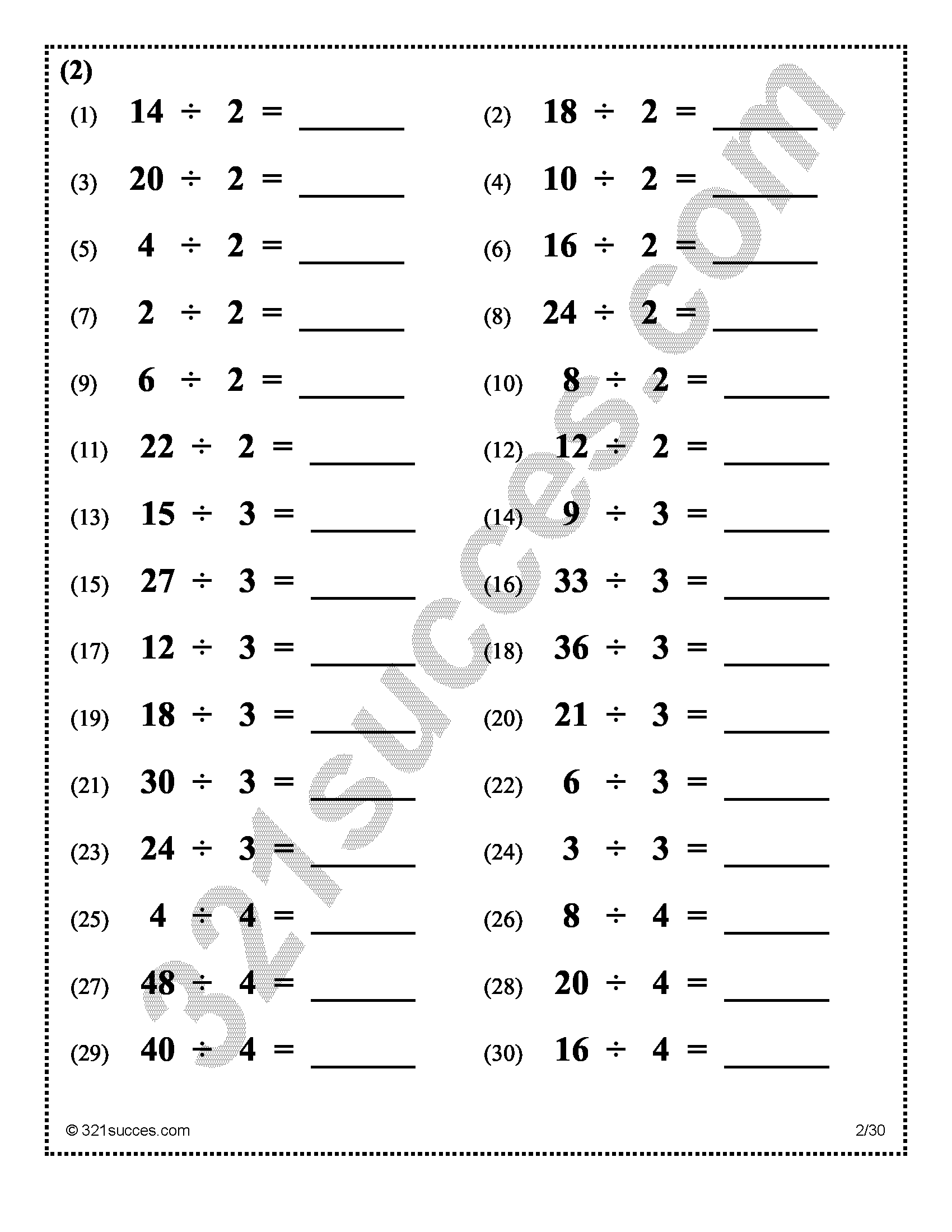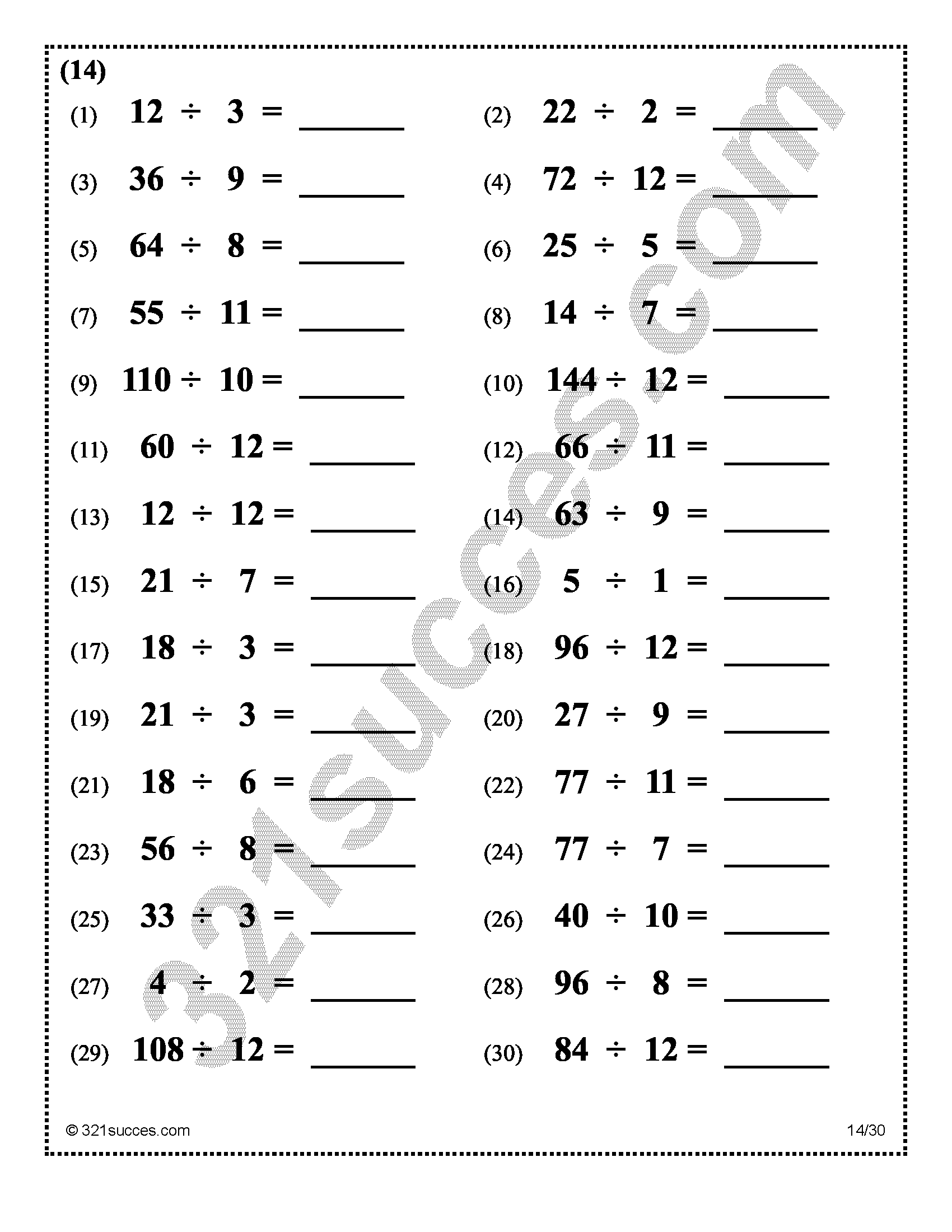 Ce cahier d'exercices contient 30 pages d'exercices pour pratiquer les tables de division (1 à 12)
