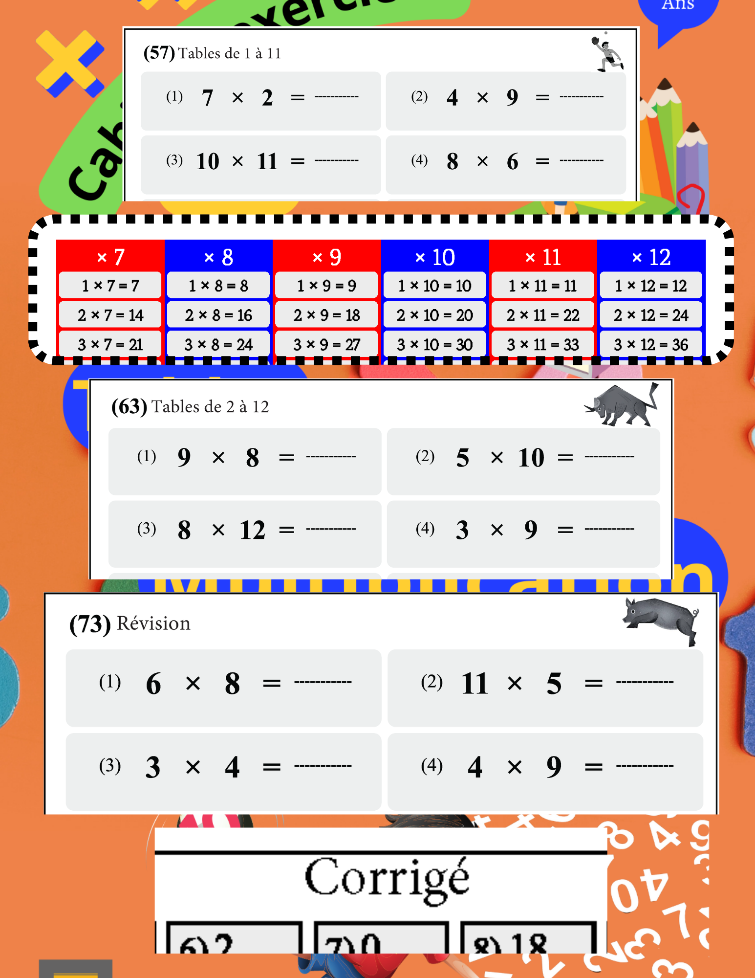 - Inclus : Plus de 85 pages d'exercices sur les tables de multiplication. Corrigé.