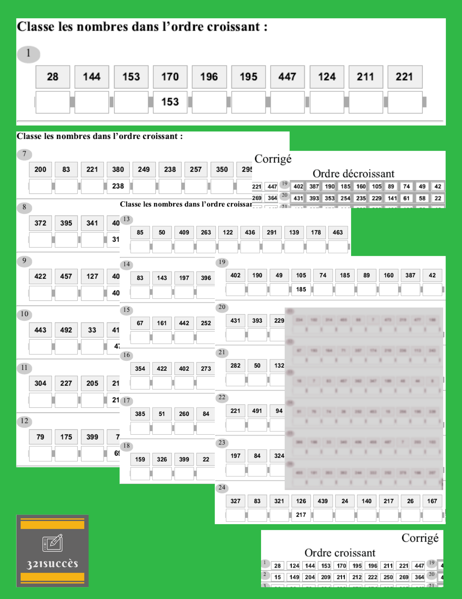 Pour pratiquer l'ordre croissant et décroissant, ainsi que la comparaison de nombres entre 0 et 500.